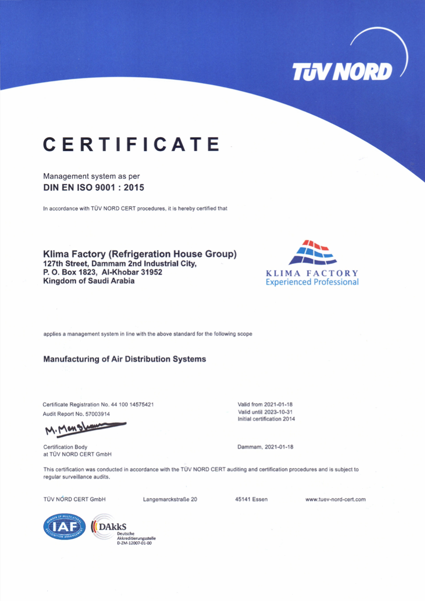 Klima Factory was formed in October 2013 by Refrigeration House Group. It was initiated through LIMA TECHNICK which forms the Electro Mechanical Contracting division of Refrigeration House Group.