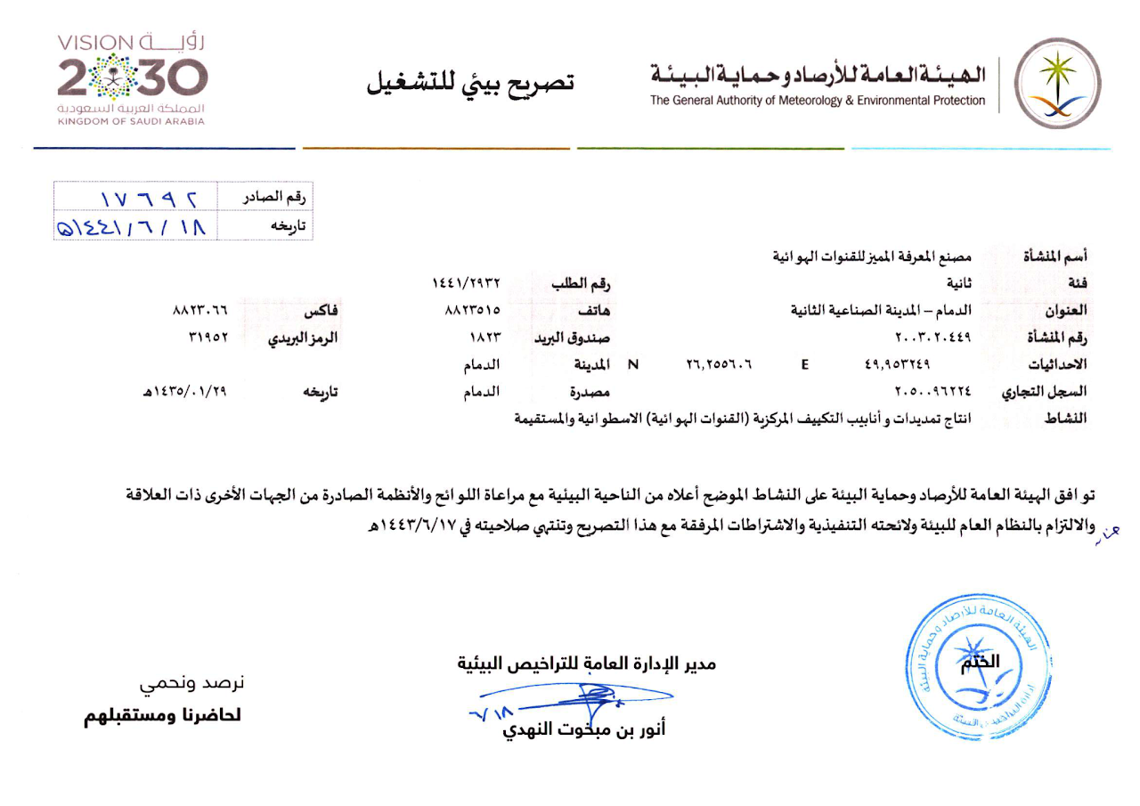 The company is utilising a 4000 m2 manufacturing facility located in the Dammam 2nd Industrial City, Kingdom of Saudi Arabia.